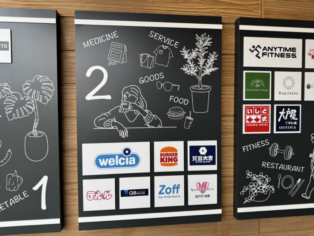 3F 大戸屋や、エニタイムフィットネス など