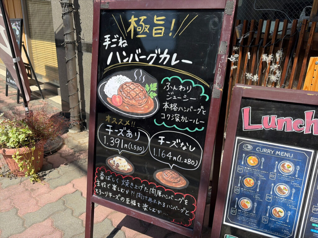 店頭の看板を見てみると、ハンバーグカレー!!う、旨そう( ✧Д✧)