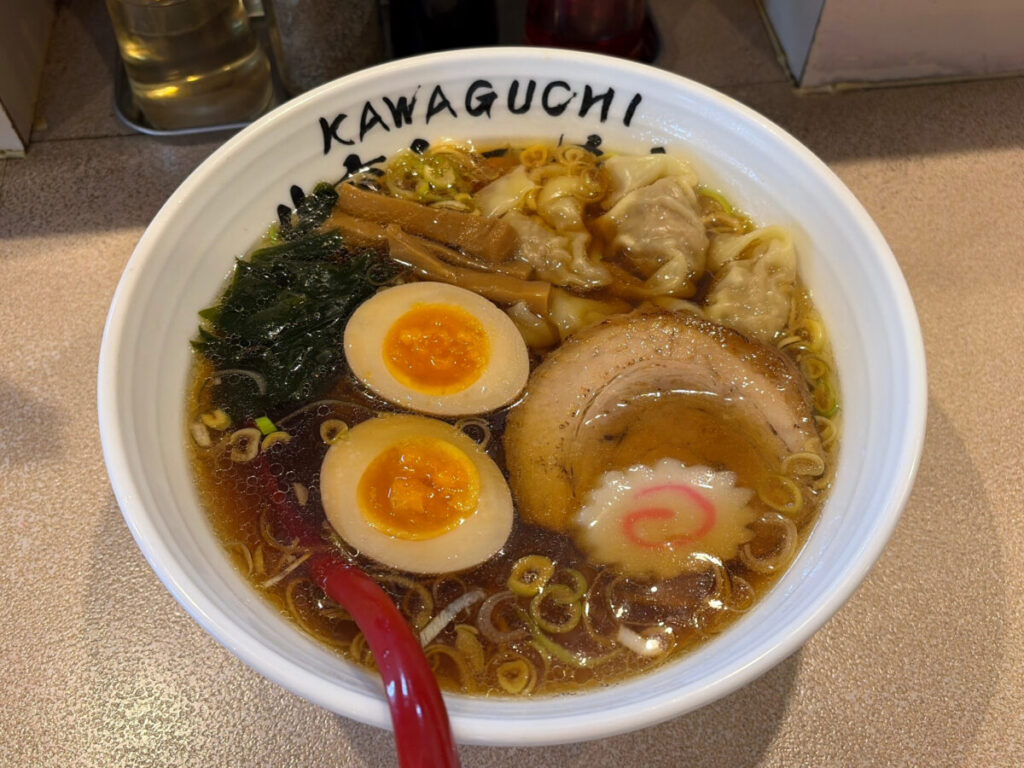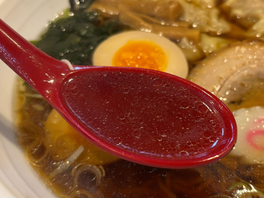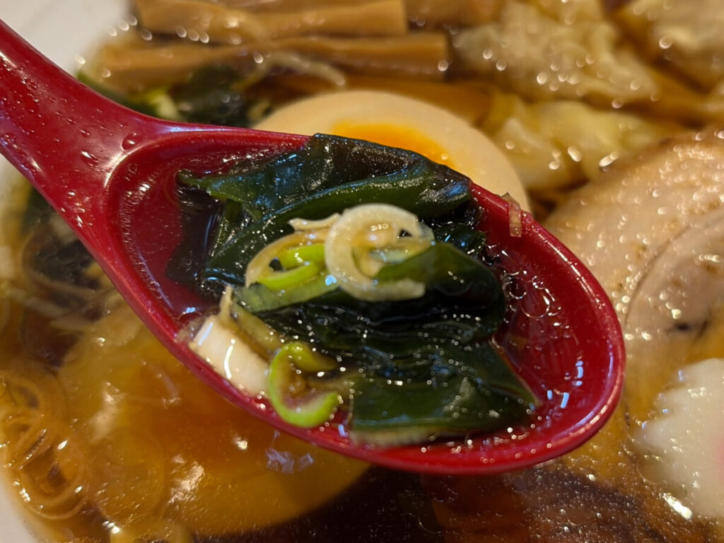 ちなみにワンタンメンのスープは醤油か塩か選べます♪前回は塩ラーメンを食べたので、今回は醤油でいただいてきましたよ〜!