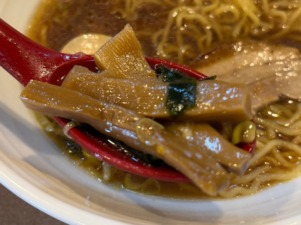 その後も、メンマの食感とスープを同時に楽しんだり、