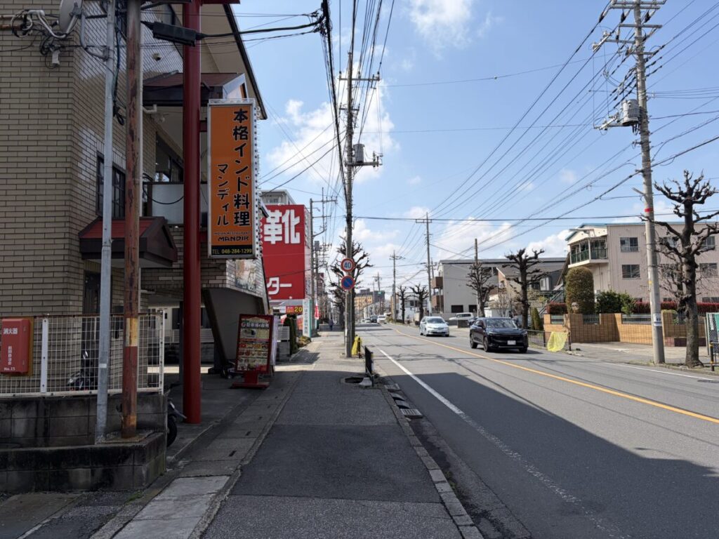 お店を背にして右はこちら。こちらは南鳩ヶ谷駅方面で、しばらく行くと「セブンイレブン鳩ヶ谷南」があります。