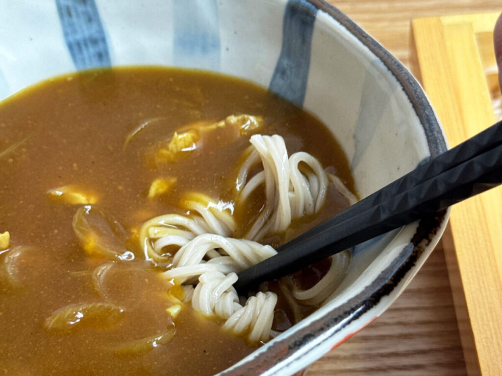 柔らかめのお蕎麦にカレーつゆがじんわり馴染んで、と〜ってもなめらかだ〜!