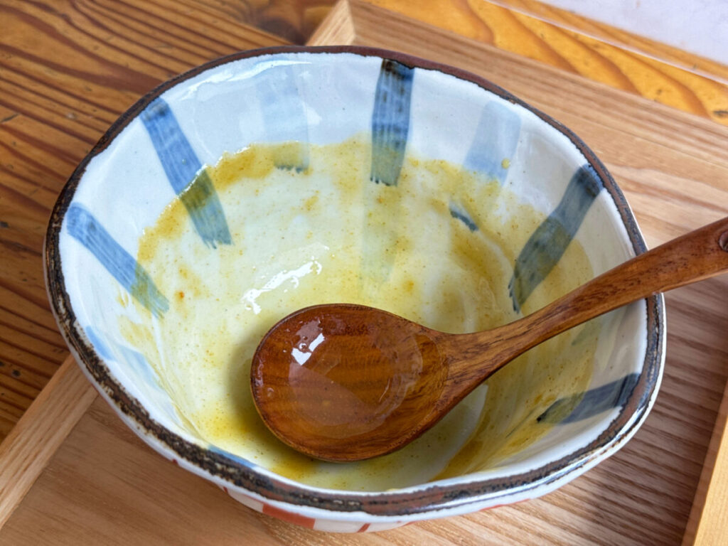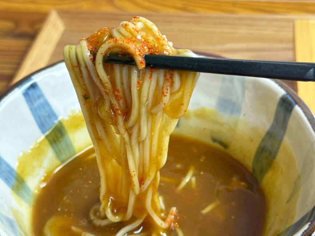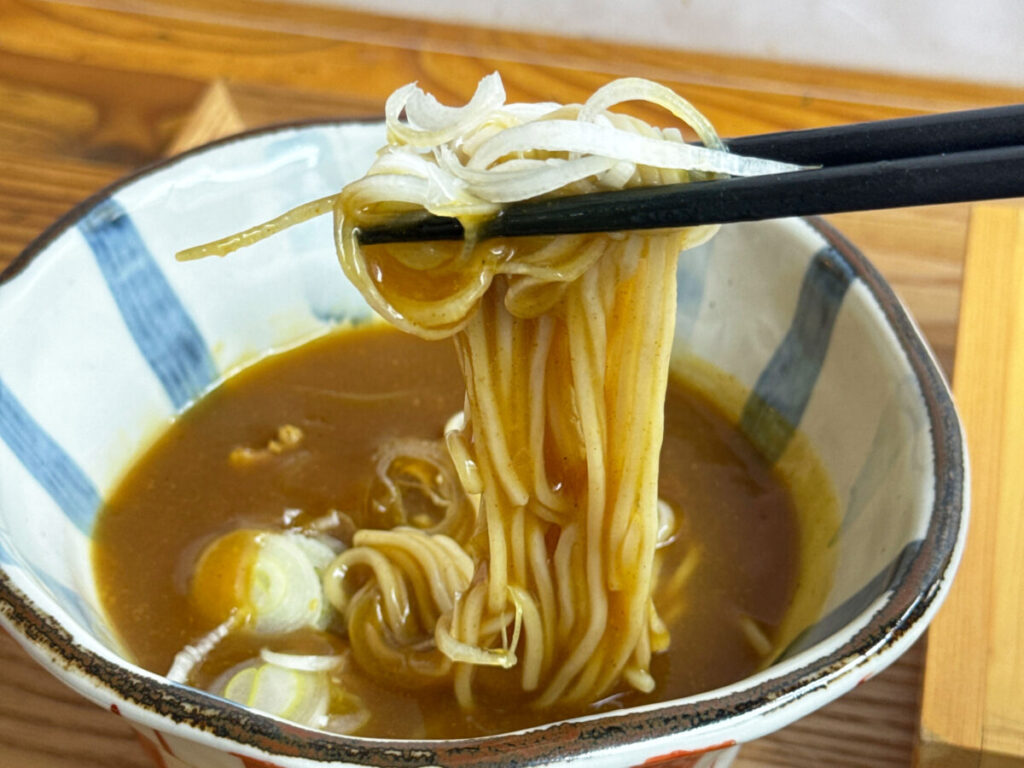 カツオとサバで出汁をとり、店主・宮西さん特製のカレースパイスを合わせたつゆと、