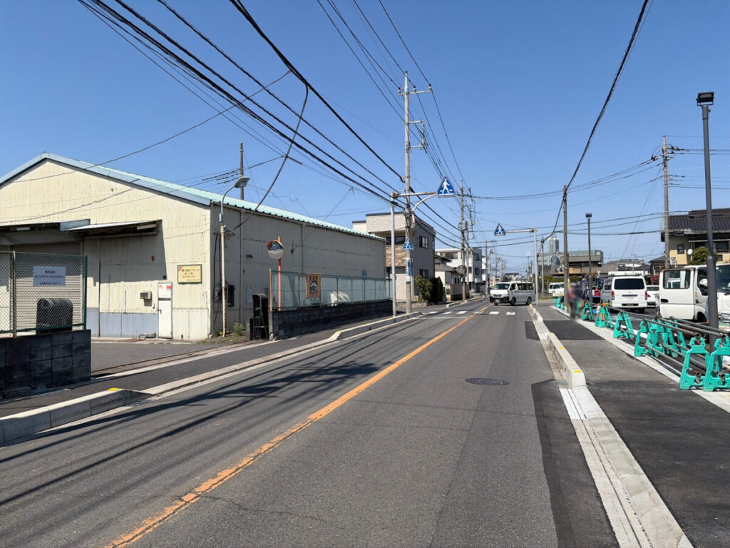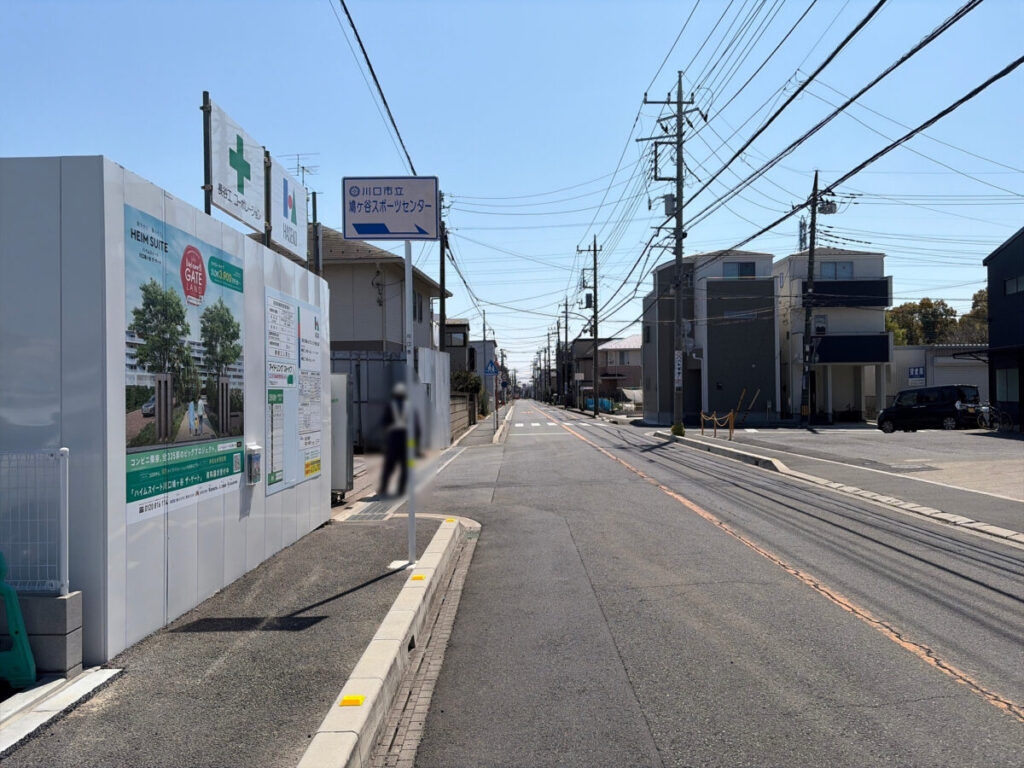 お店を背にして右は鳩ヶ谷駅方面。道なりしばらくに進むと「大東ガス プチフラム川口・鳩ヶ谷」があります。