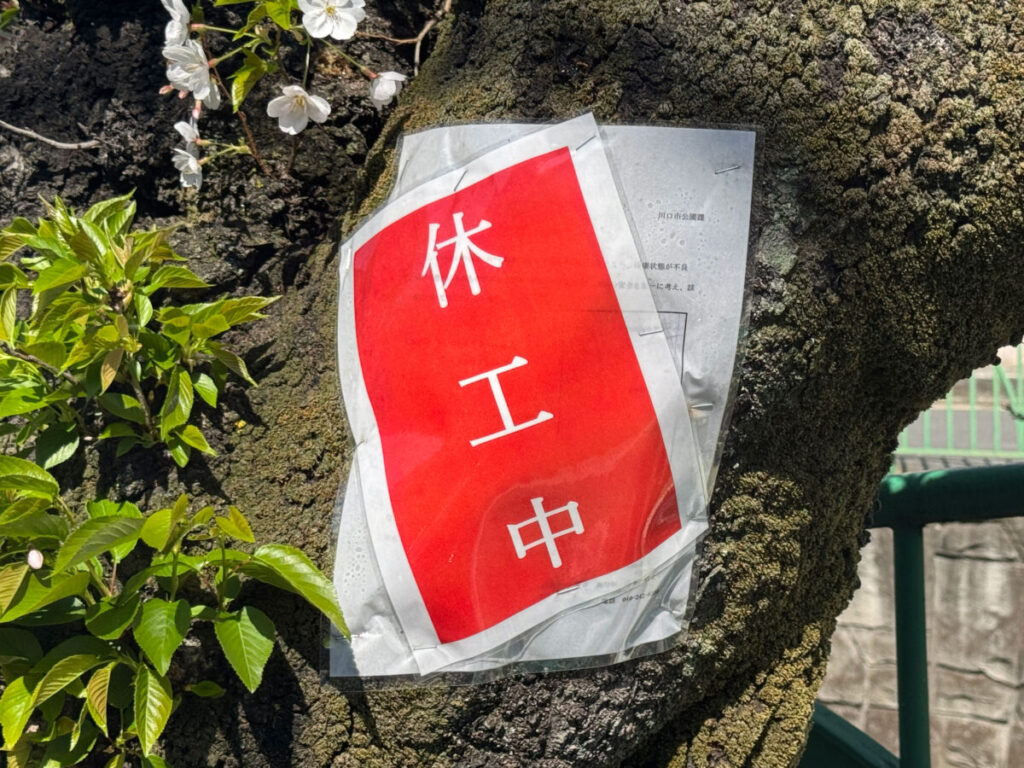ですが、4月3日現在は「休工中」とのお知らせがあり、まだ桜はキレイに咲いていました。