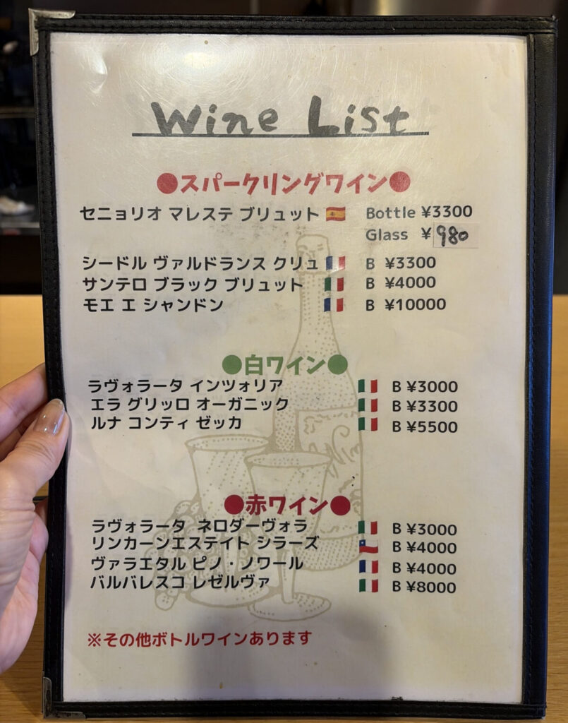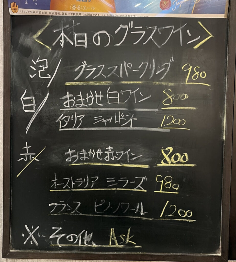 ちなみにこの日のグラスワインはこの中から選べました↓