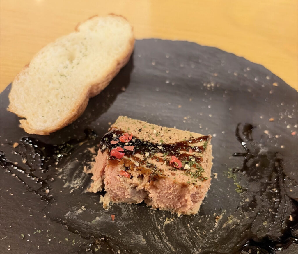 さてまず一品目は「鶏レバーパテ(850円)」ですよ!