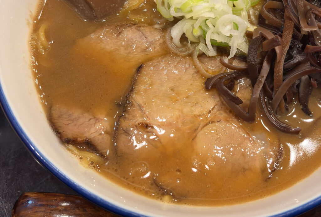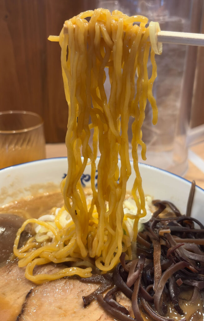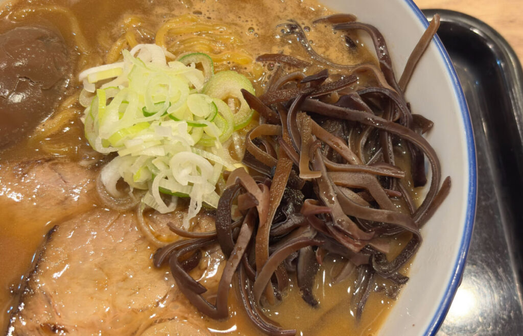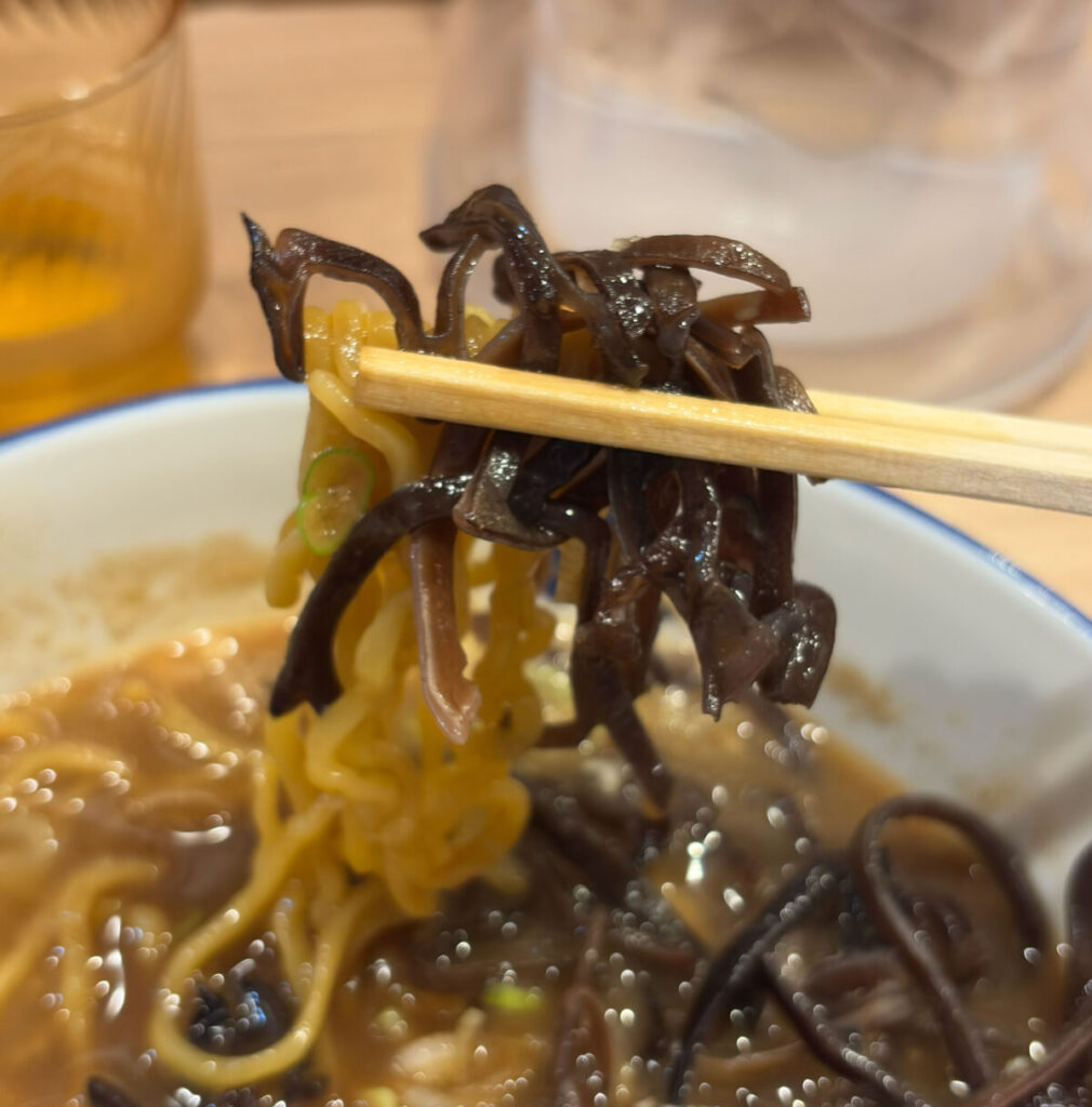 おお~、キクラゲのコリコリ感と麺のもちもち感のコントラストがたまんないな~!スープの味が濃い目だから、一口一口の満足感がかなりある。