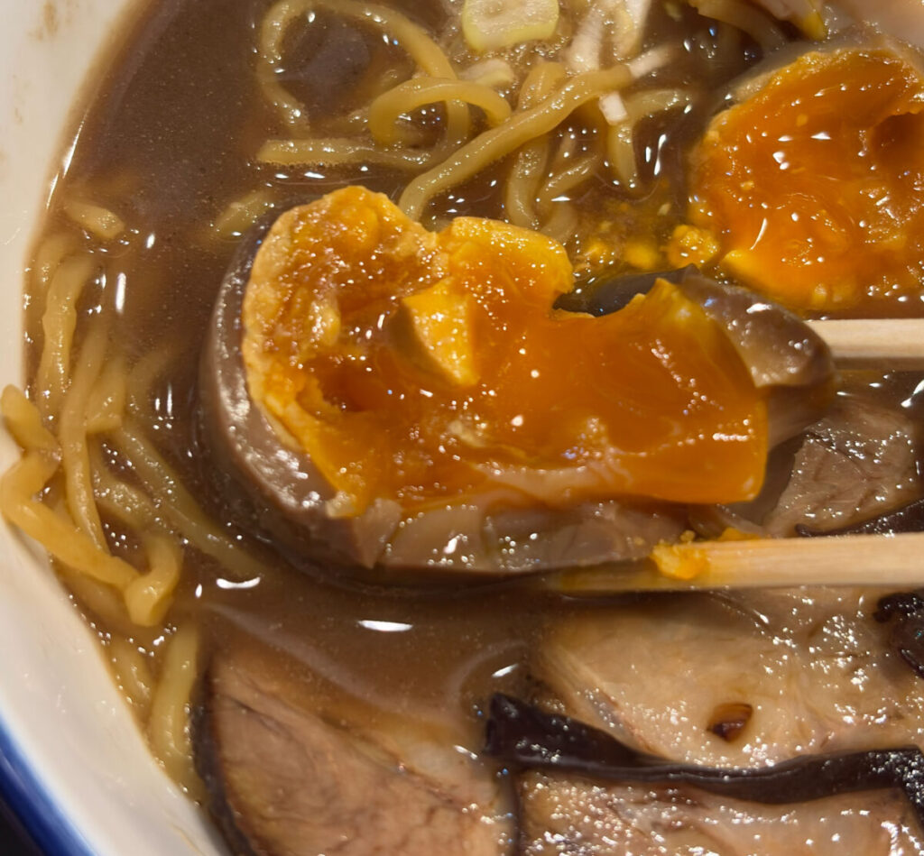 うわあ~!黄身がとろっと溶け出す~(o^―^o)湯で具合、ドンピシャすぎる。