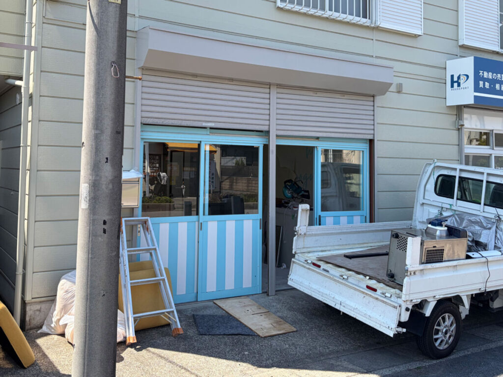 そして4月3日(金)の様子がこちら。すでに看板が外されて、店内の工事を行っているようでした。