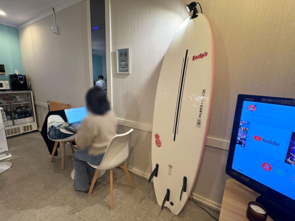 さらに、サーフボードが置いてあったりと遊び心もちらり。ゲームもできるんだって!