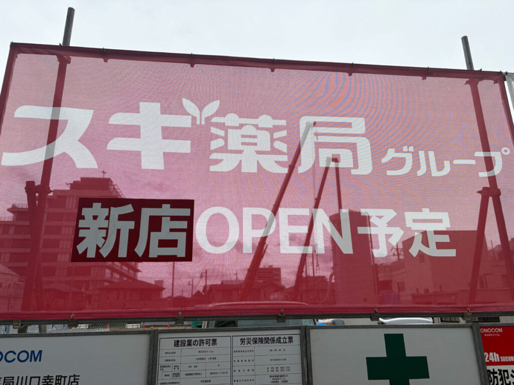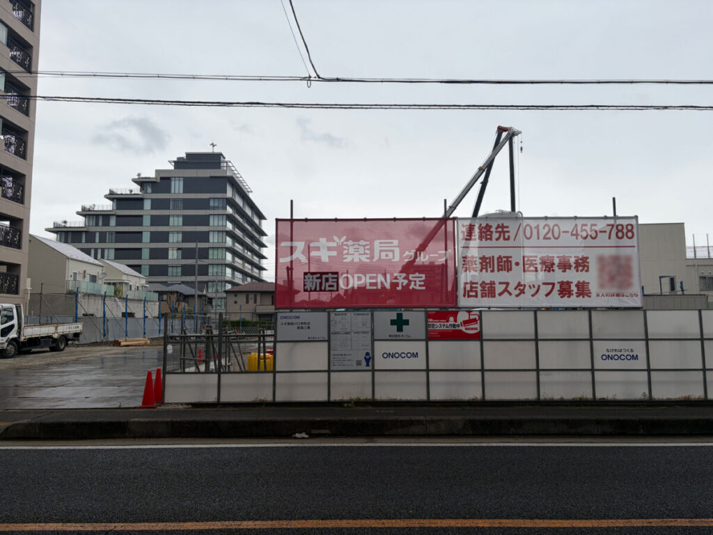 工事現場に「スギ薬局グループ新店OPEN予定」と大きくお知らせが出ていましたよ。