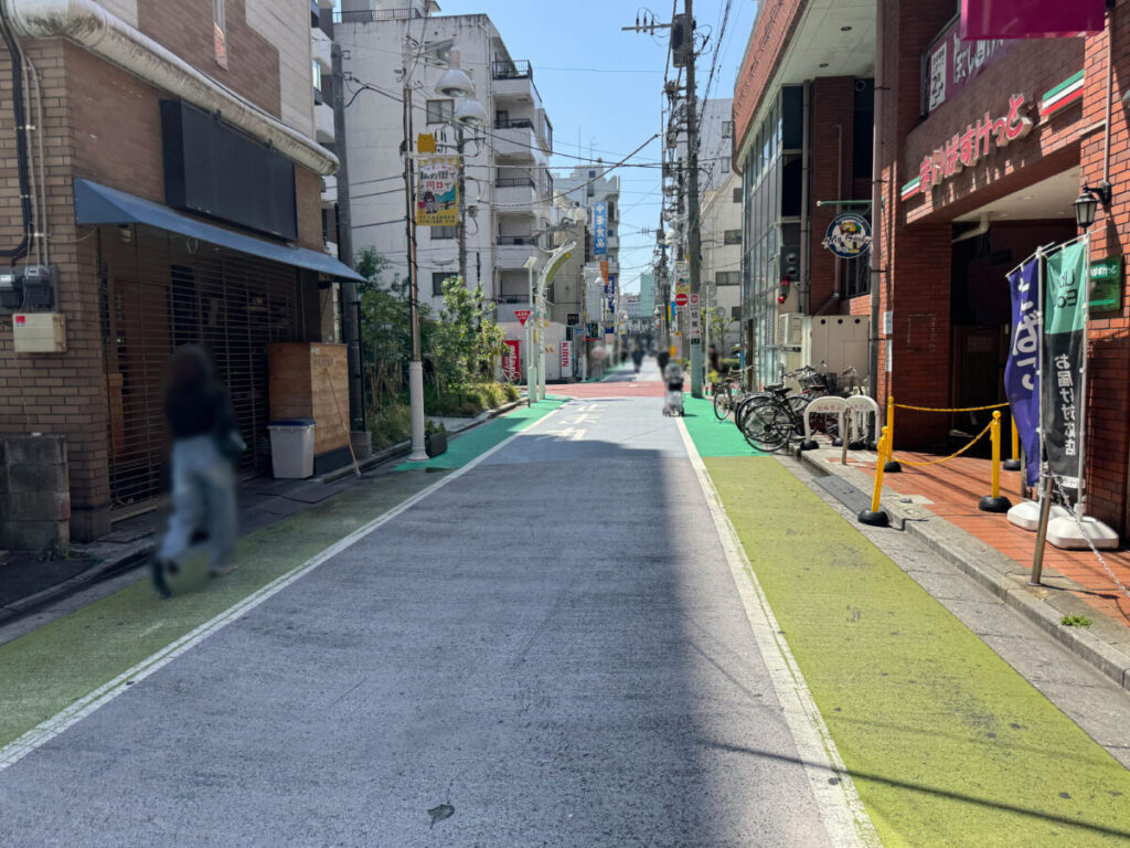 お店を背にして右はこちら。すぐに「まいばすけっと」があり、まっすぐ進んでいくと突き当たりに西川口駅。