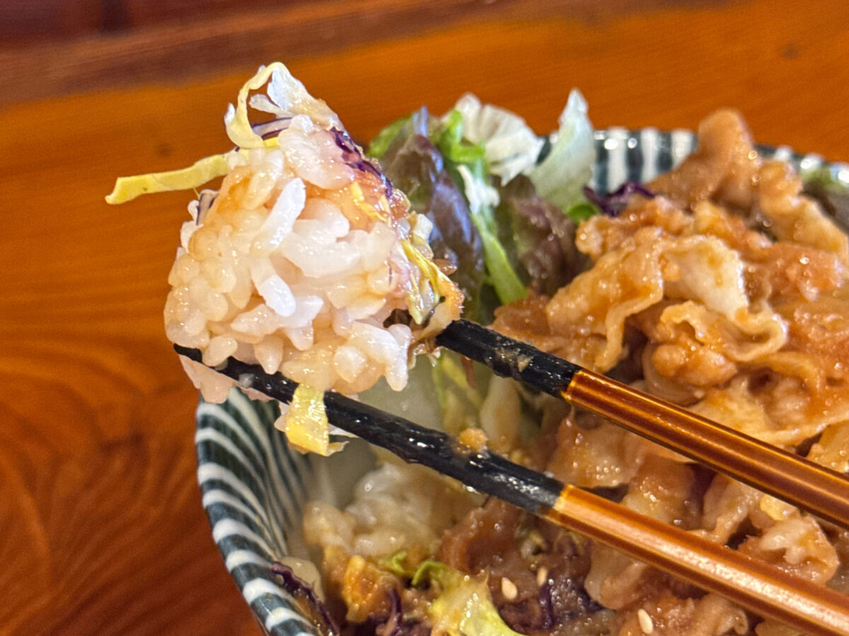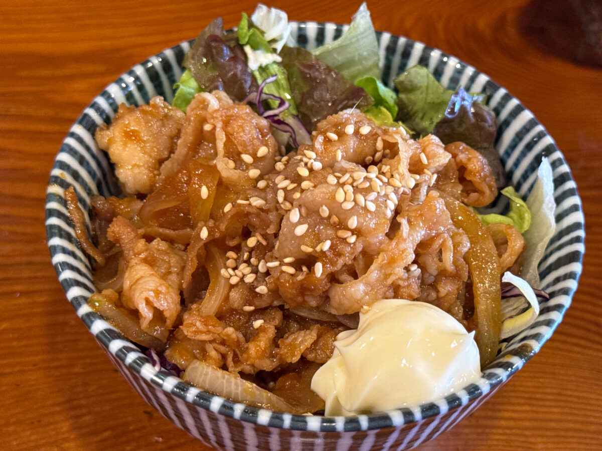 まずはミニ豚バラ生姜焼き丼が着丼!