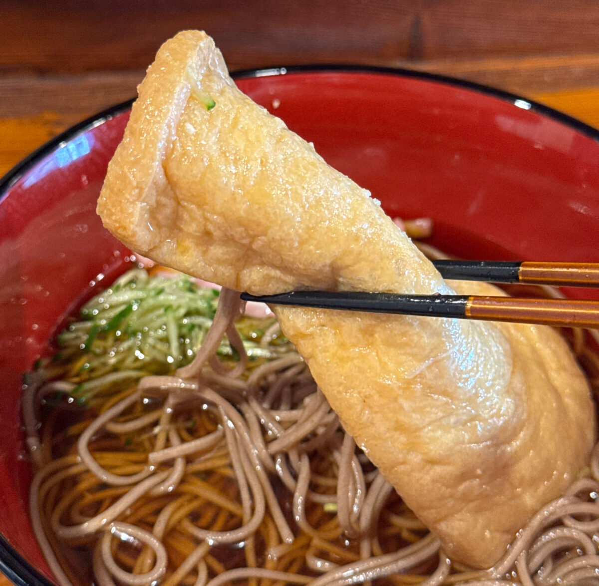 1枚丸々入った大きなお揚げ。噛んだ瞬間、じゅわ〜っとお出汁が口いっぱいに広がる〜!