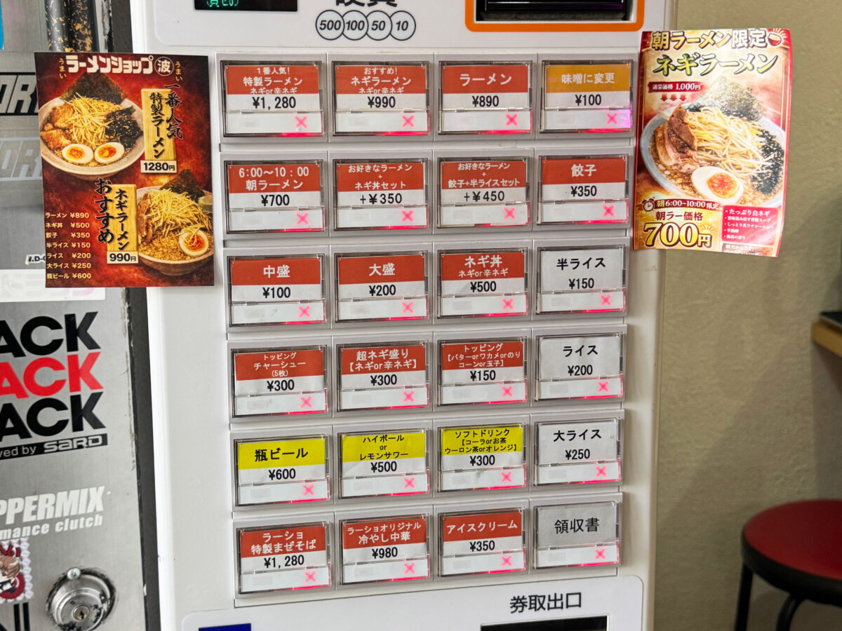 券売機はこちら。おっ、オープン当初からメニューが変わってる!