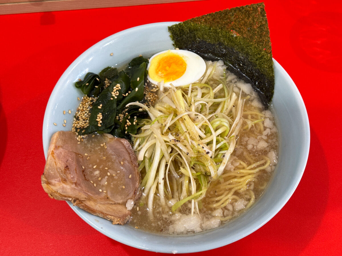 麺 かため・味の濃さ 普通・背脂 普通で注文した「ネギラーメン(990円)」がこちら。