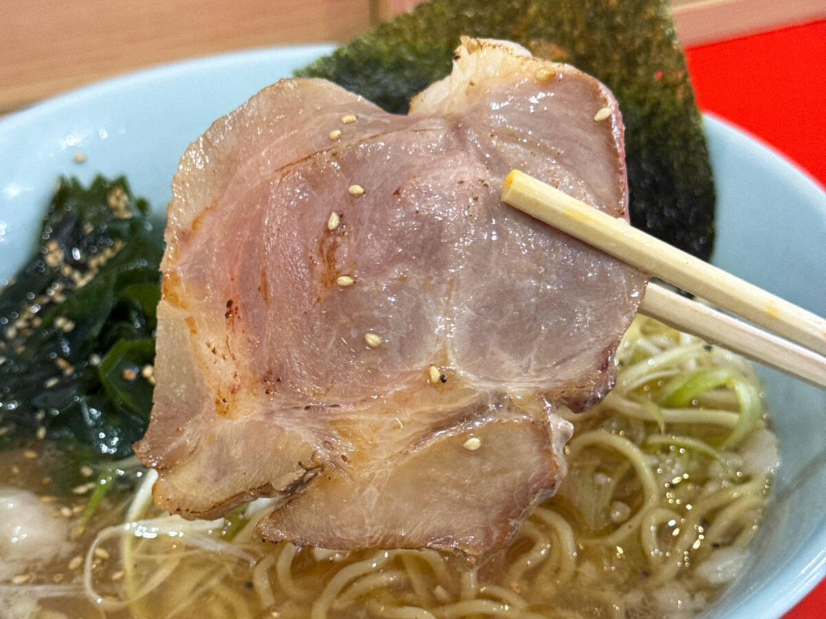 このチャーシュー、軽く炙られていて噛みごたえしっかり。ラーメンとの相性もいいなあ。