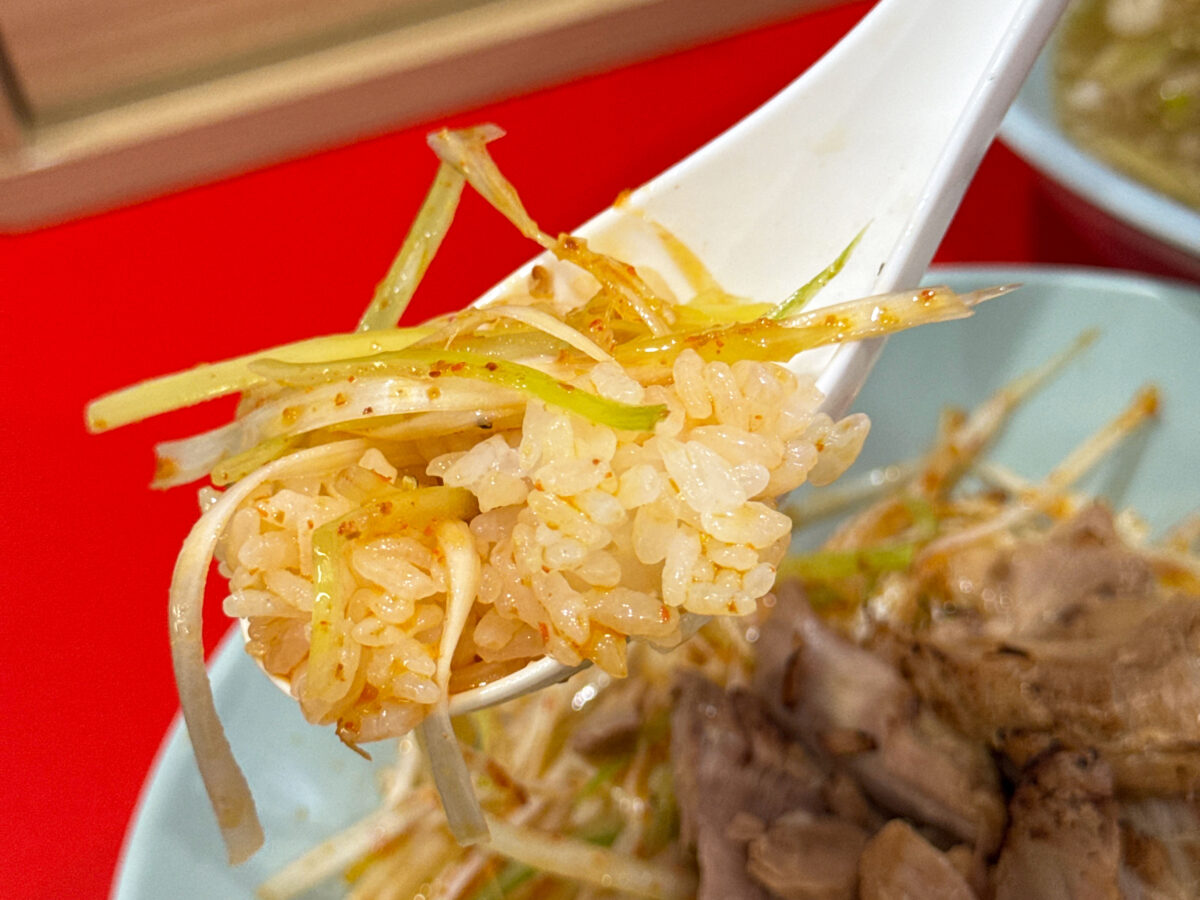 さあ、麺をすすり終えたところでネギ丼へ。まずは辛ネギからパクッ。