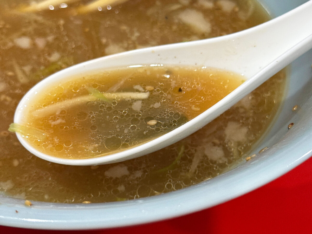おっ、見た目に反してあっさり!でもしっかり旨みがあって、スッと体に入ってくる醤油スープです。