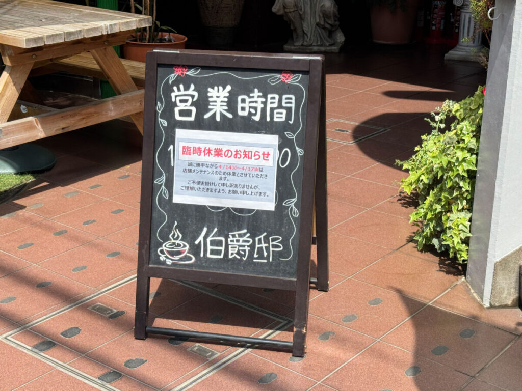 西川口の「伯爵邸」が、店舗メンテナンスのため4月14日(火)〜17日(金)まで臨時休業するみたい。店頭にお知らせが出ていました。