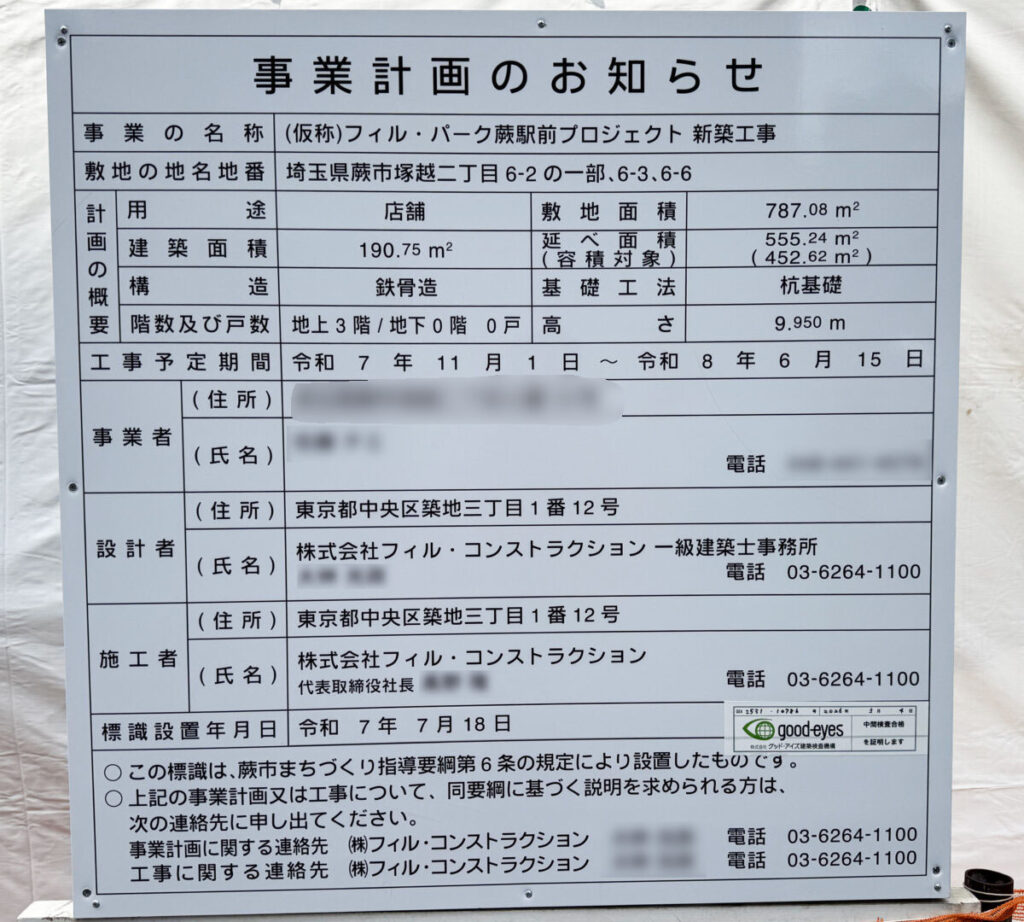 蕨駅東口に建設中「(仮称)フィル・パーク蕨駅前プロジェクト」の工事の様子を見てきました。