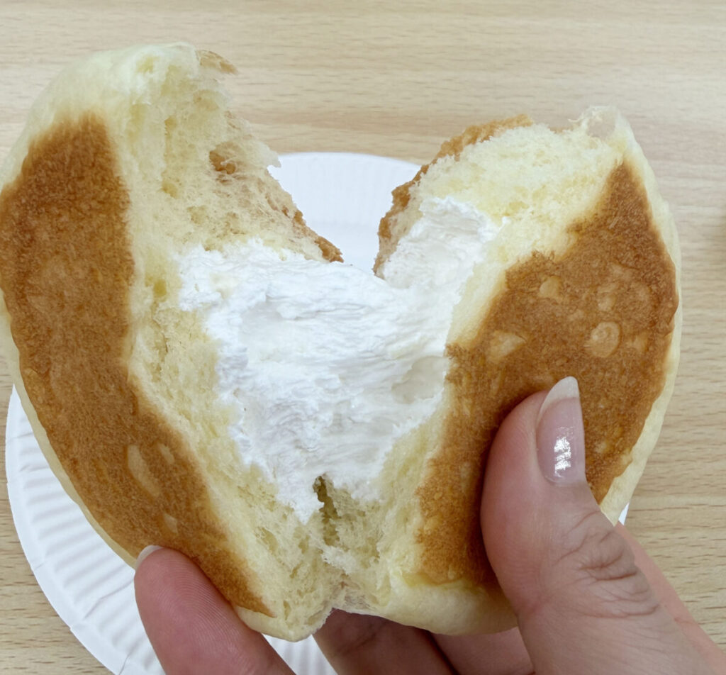 こちらはふんわり焼き上げたパンケーキに、濃厚なミルククリームがサンドしてあるんだって~!