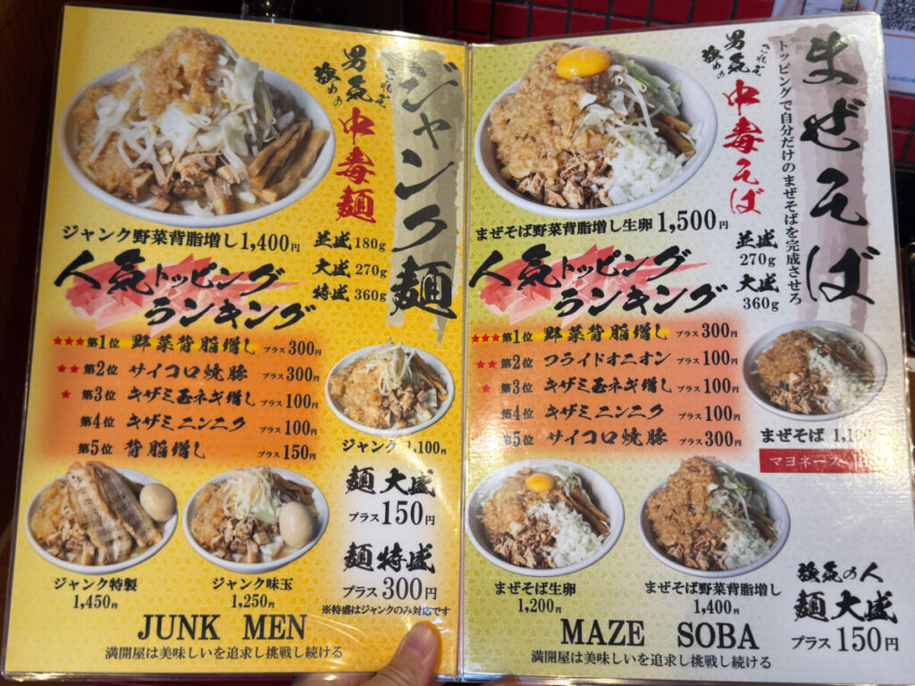 味噌ラーメンの他にも、ジャンク麺や、まぜそばもある〜!