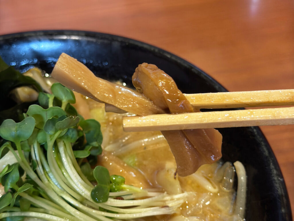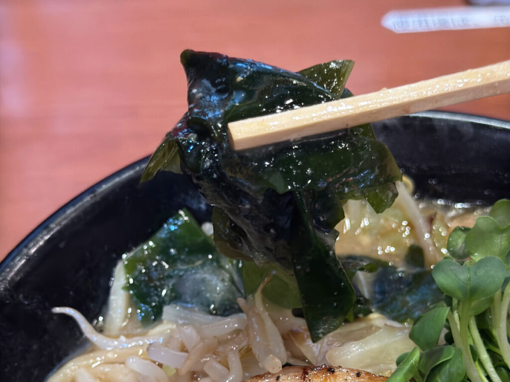 具は、太めのメンマに、味噌ラーメンといえばのワカメ。