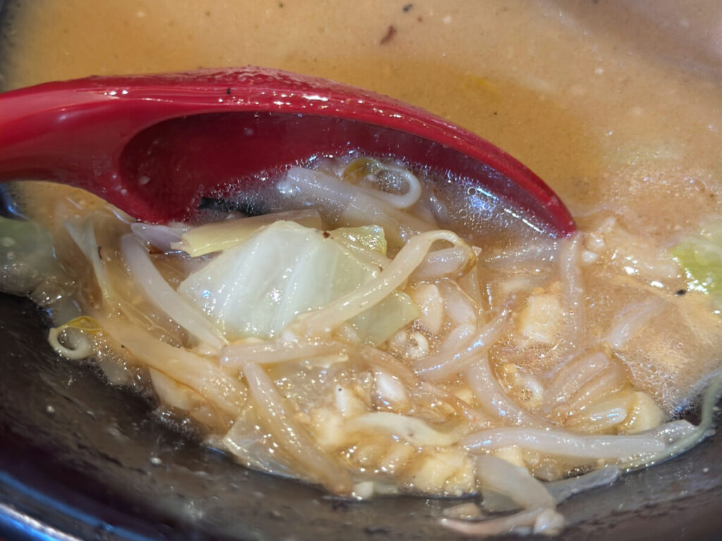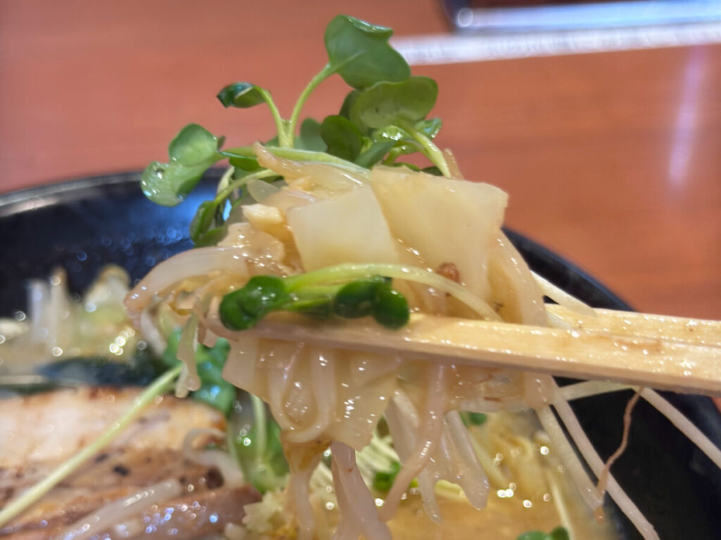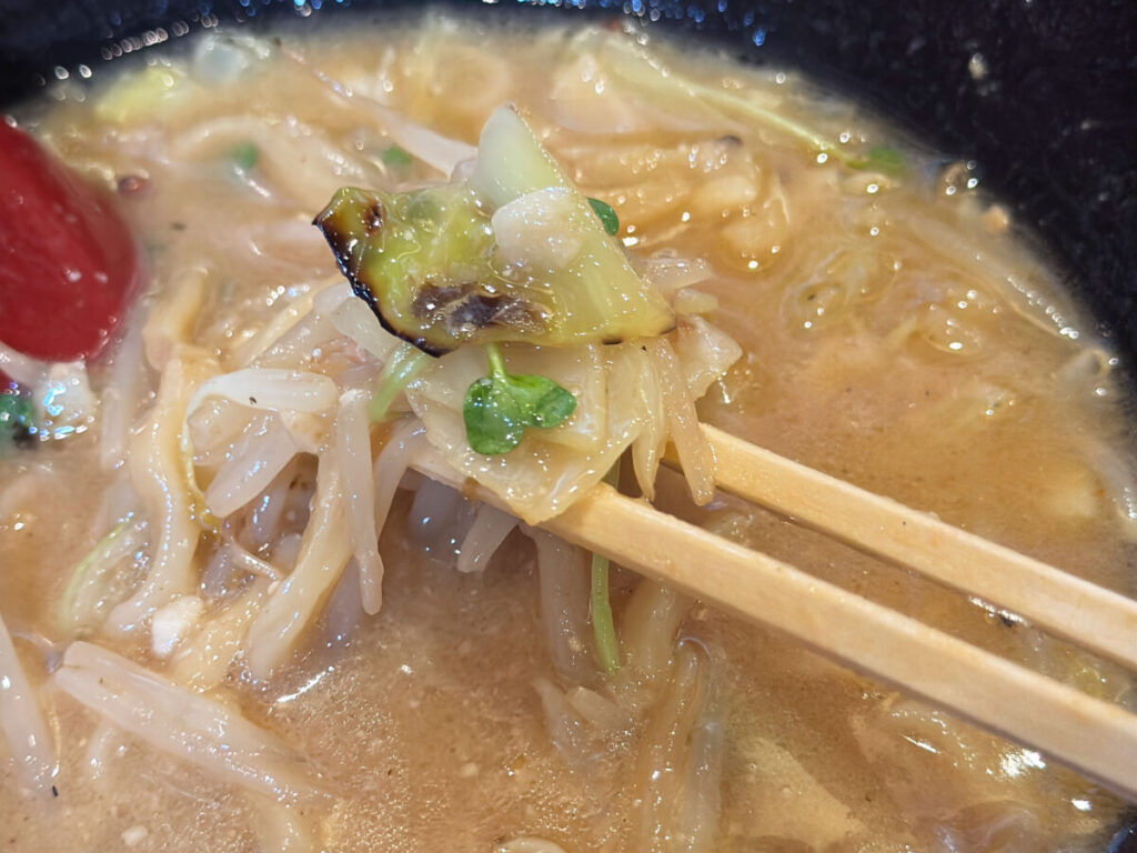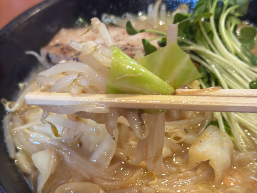 炒められた野菜もモリモリ入ってるんですよ。しっかり炒められた野菜が味噌ラーメンに馴染んでこれがまたいい。