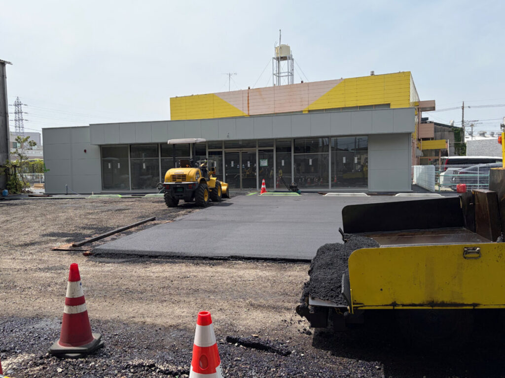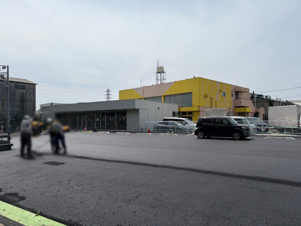 おっ!グレーの建物があらわに!そしてその手前にアスファルトが綺麗に敷かれている!