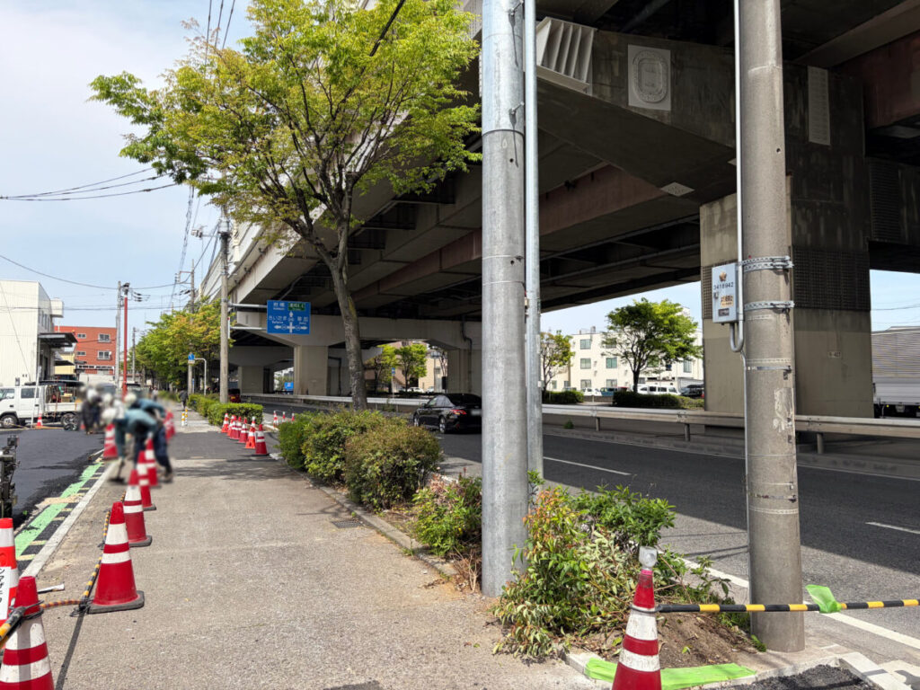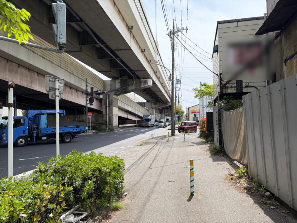 工事現場を背にして右はこちらで、第二産業道路方面です。すぐに「国際興業バス 川口営業所」があります。