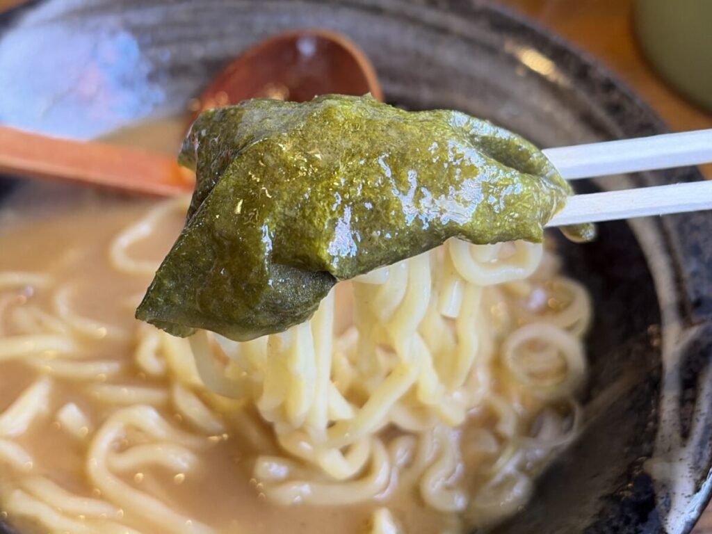 海苔はスープにしっかり浸からせて、