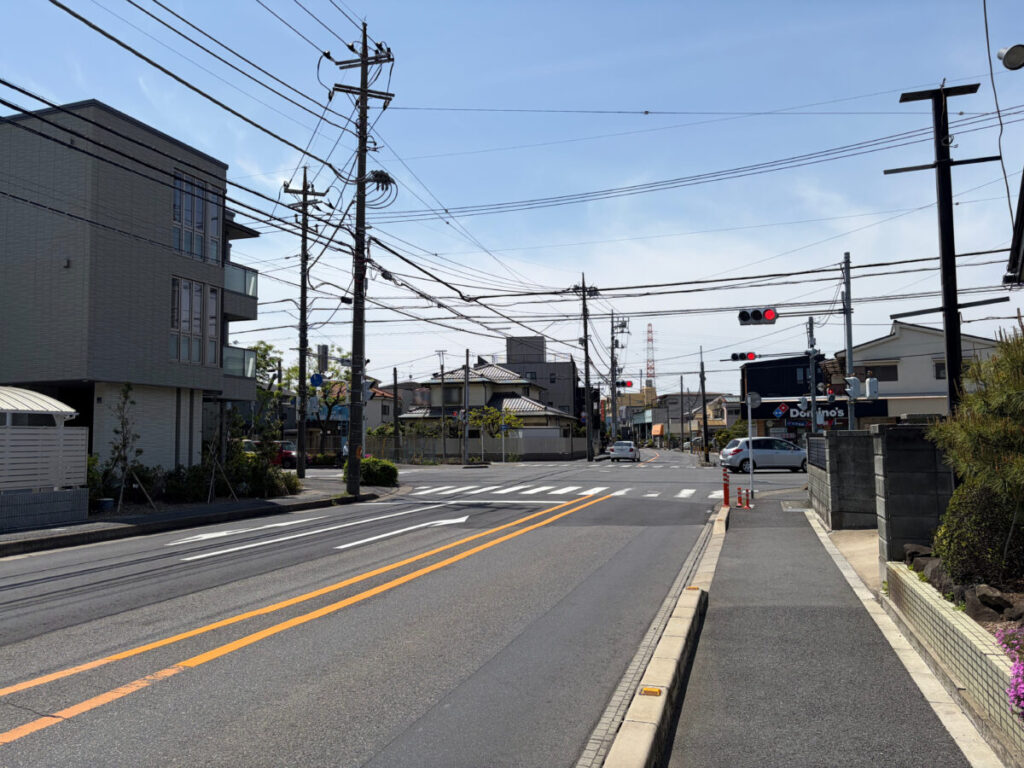 お店を背にして右はこちら。信号を渡ると「ドミノピザ南鳩ヶ谷店」があります。