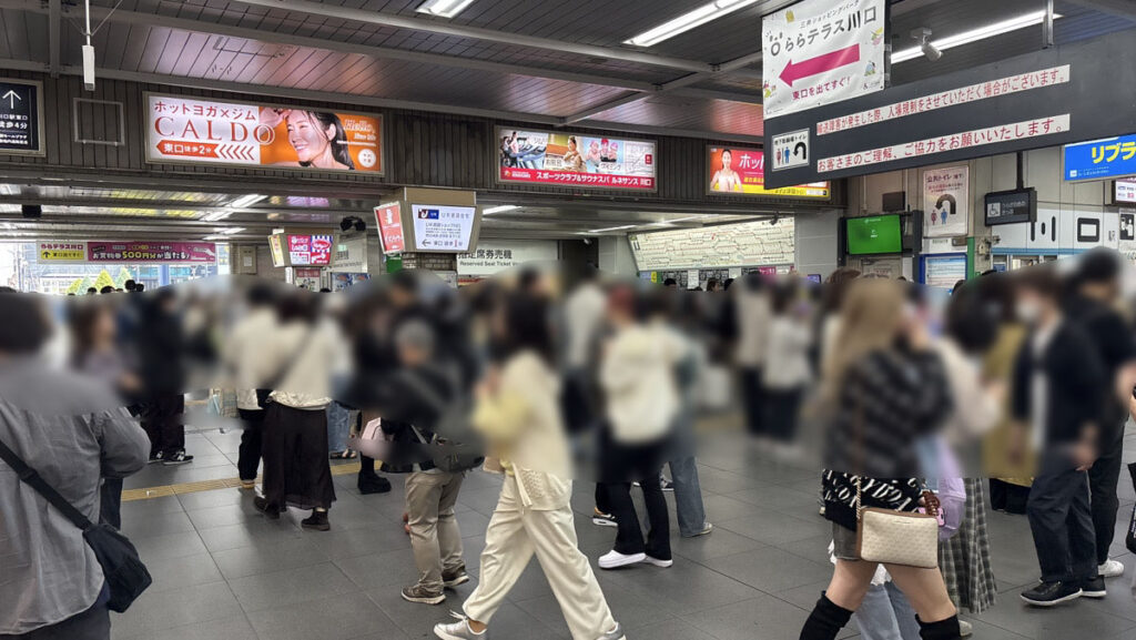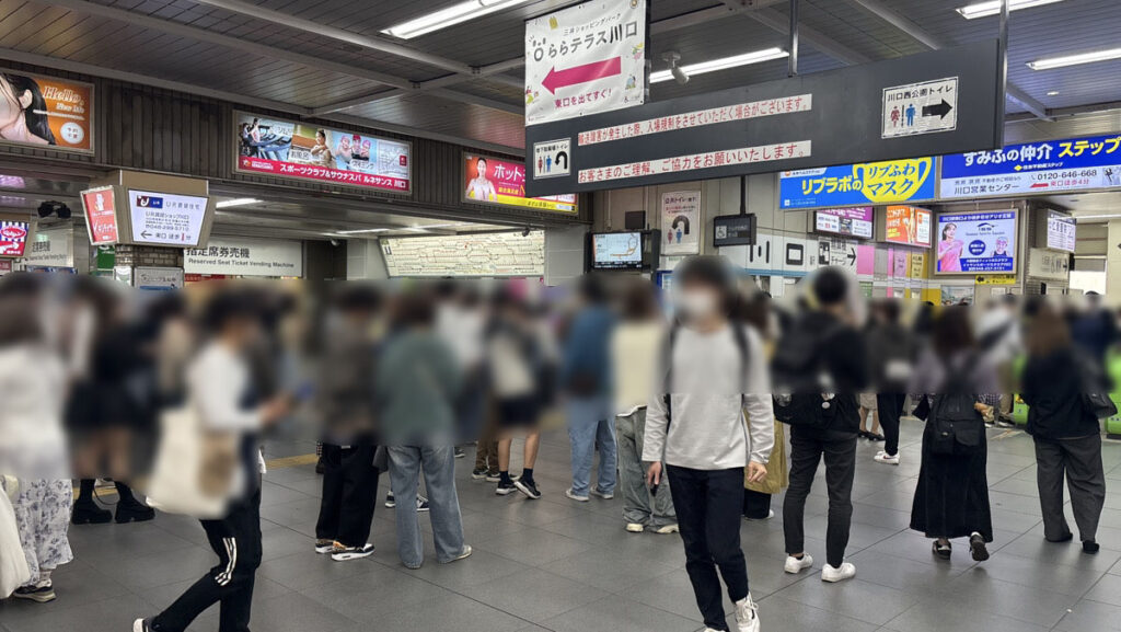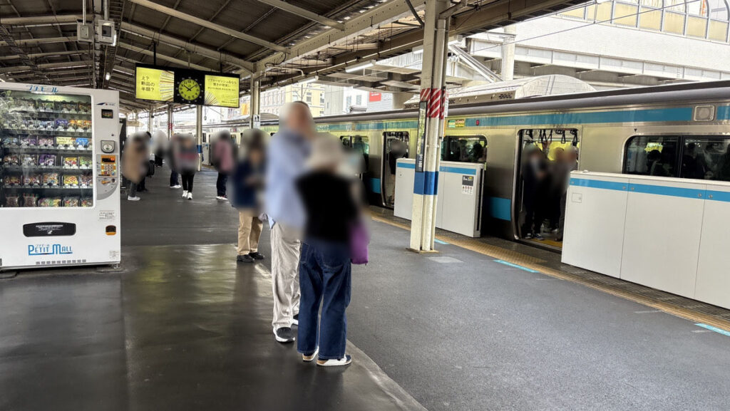 駅のホーム、土曜日だからか大混雑というわけではないですが、子連れのファミリーとか大きなスーツケースを持ったカップルとかが途方に暮れてました。