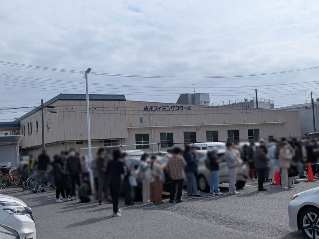 駐車場にも!こちらは、トレカを購入目的の方の行列みたい。こっちだけでも100人は超えてる。