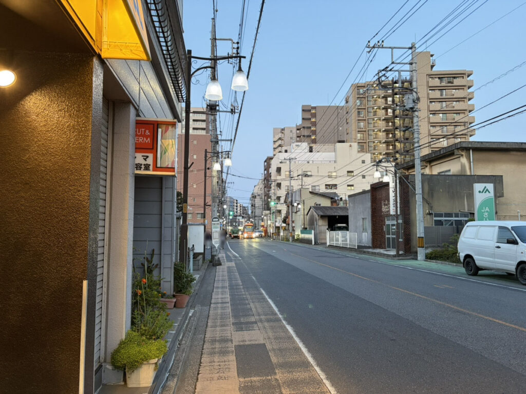 お店を背にして右はこんな感じ。すぐに「セブン-イレブン 戸田上戸田3丁目店」があり、さらに進むと「シャトレーゼ上戸田店」があります。