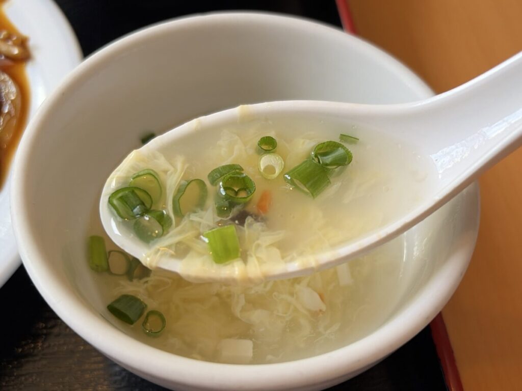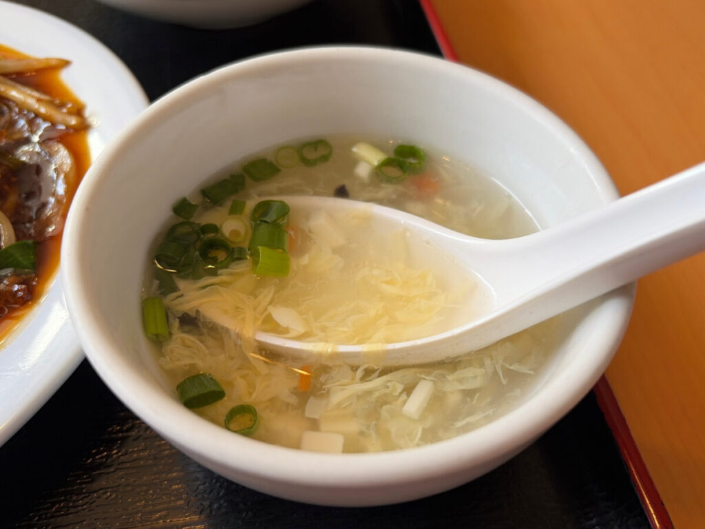 まずはたまごスープで喉を潤して、