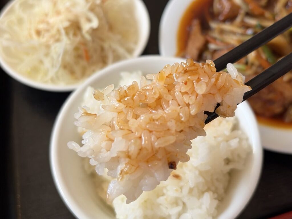 硬めに炊かれたごはんがタレとよく絡んでガンガン食べちゃう!