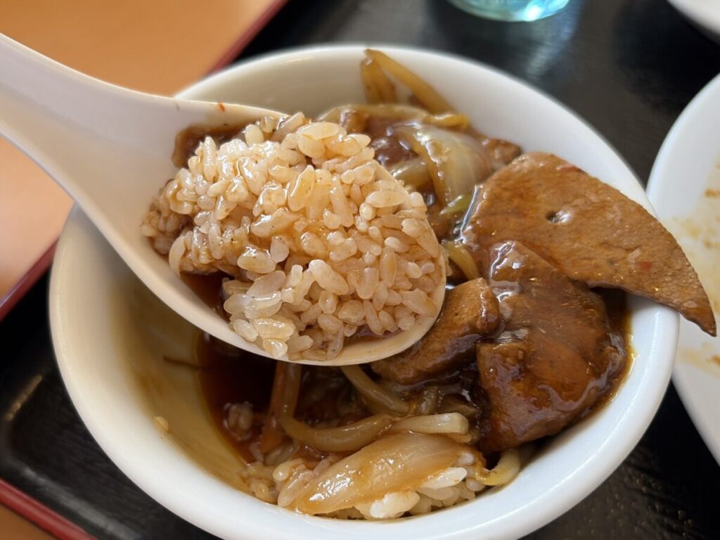 台湾流ニラレバ定食ここに見参!という感じだ、早速いただいちゃおう♪