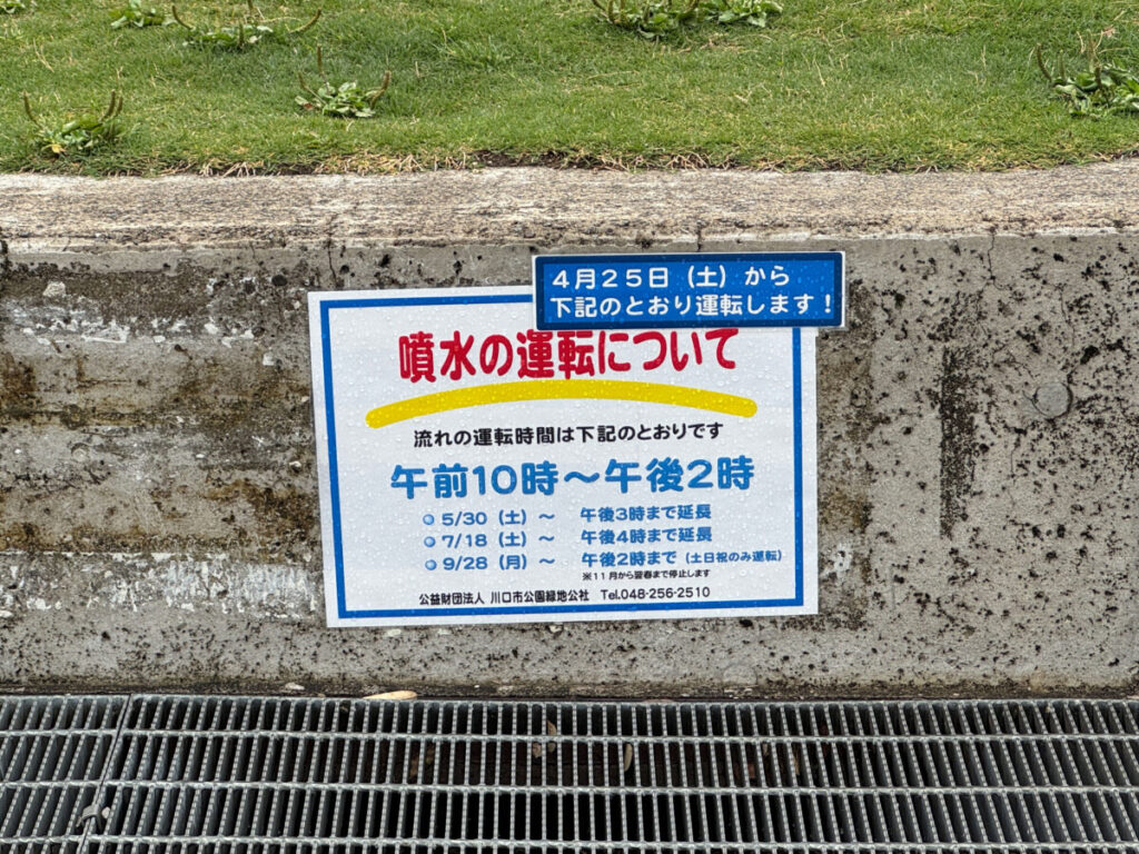並木元町公園の親水施設が4月25日(土) から始まったみたい!現地にお知らせが出ていましたよ!